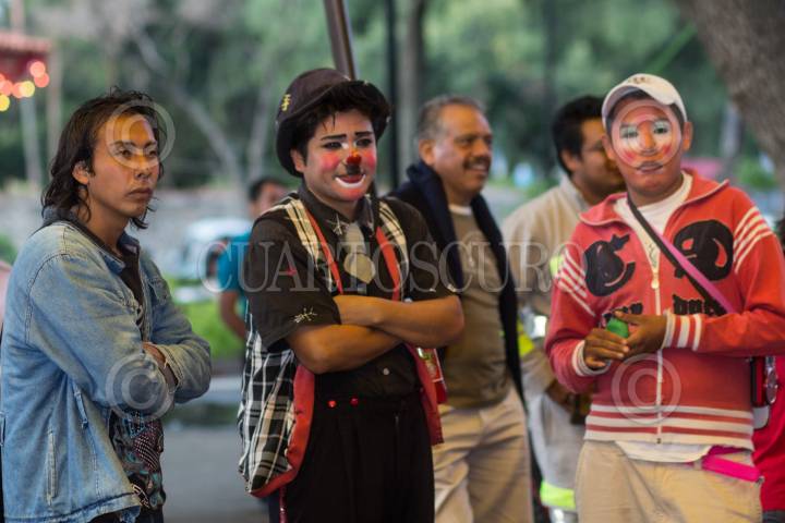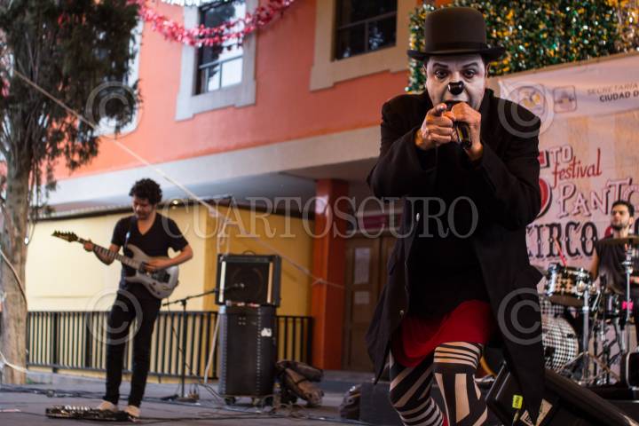 MEXICO, D.F., 13SEPTIEMBRE2014.- El grupo musical ¡Qué payasos! se presentó con divertido concierto en la explanda de la delegación Milpa Alta como parte de las actividades del 4° Festival de Pantomima, Circo y Clown, el cual es organizado por el Faro Milpa Alta, institución que busca difundir la cultura y las artes de una manera divertida a los niños y jóvenes de esta delegación. Al evento se dieron cita niños, jóvenes y payasos que pratican artes cicrcenses, para participar en un concurso convocado por el Faro. FOTO: DAVID POLO /CUARTOSCURO.COM