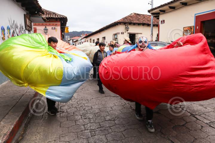 SSAN CRISTÓBAL DE LAS CASAS, CHIAPAS, 21ENERO2024.- Panzudos y Parachicos salieron a danzar en las calles del municipio, como parte de festividad del Santo de San Sebastián. Las personas se caracterizan con máscara y maquillaje. FOTO: DAMIÁN SÁNCHEZ/CUARTOSCURO.COM