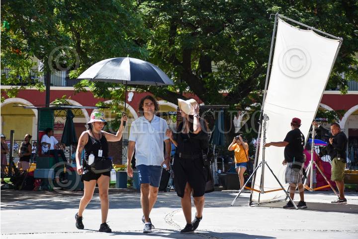 Integrantes del elenco de la serie de Disney "Papá por encargo" se encuentran grabando parte del melodrama en calles del centro de Campeche.