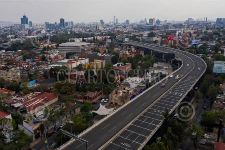 Toma aérea del segundo piso de Periférico con dirección al sur de la ciudad.