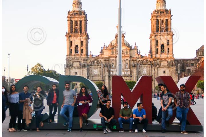 Gente disfrutando de la tarde en el Zócalo de la Ciudad de México.