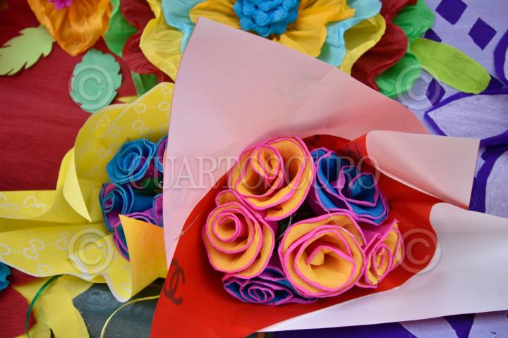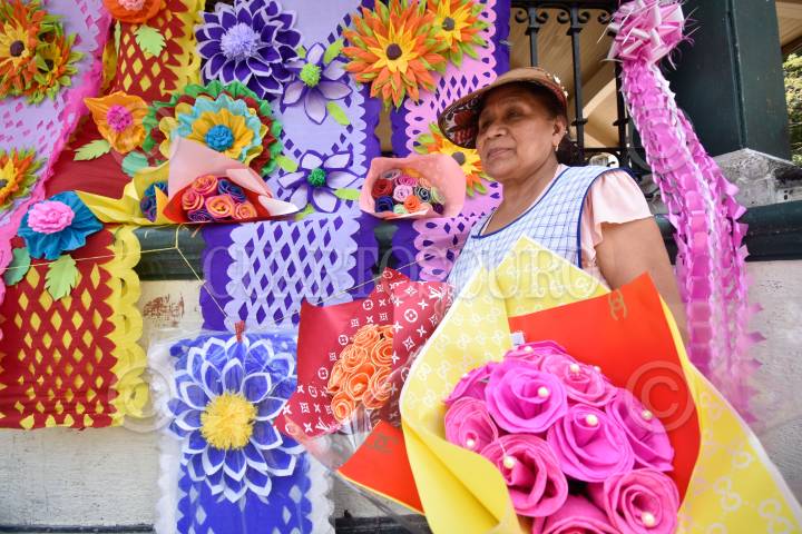 Como cada año, desde hace 30 años, la señora Silvia Román elabora cortinas de papel picado para venderlas en el zócalo de la capital del estado de Guerrero en el día de las Madres. Ella es la tercera generación en su familia que se dedica a la elaboración de piñatas y cortinas, sus hijas se convertirán en la cuarta generación en este oficio.