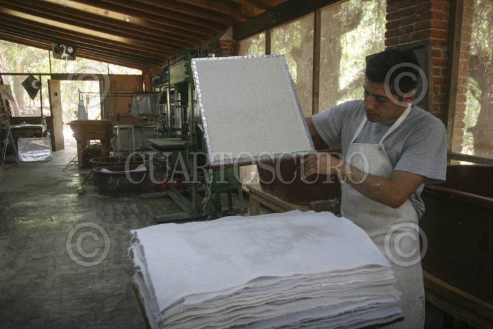 SAN AGUSTÍN ETLA, OAXACA, 06JUNIO2013.- Desde hace siete años el municipio de San Agustín Etla cuenta con un proyecto de reciclado de papel llamado Taller Arte Papel Oaxaca, mismo que fue iniciado por el pintor oaxaqueño, Francisco Toledo, el fin de este espacio es aprovechar los recursos naturales para la creación de papel 100 por ciento puro ya sea para la creación de obras de arte, joyería de papel o cualquier cosa que se le ocurra a quien lo utilice. Enrique Ramírez Castellanos encargado del área de producción, señaló que la creación de estos productos se realiza con materiales como la corteza de árboles, los productos sintéticos dijo, no son utilizados, incluso apuntó, el agua que se utiliza retorna a la naturaleza sin ningún contaminante pues lo que planteó desde el inicio es no dañar a la madre naturaleza. FOTO: ARTURO PÉREZ ALFONSO /CUARTOSCURO.COM