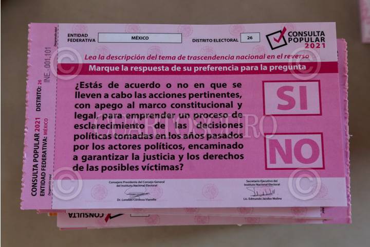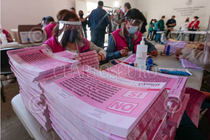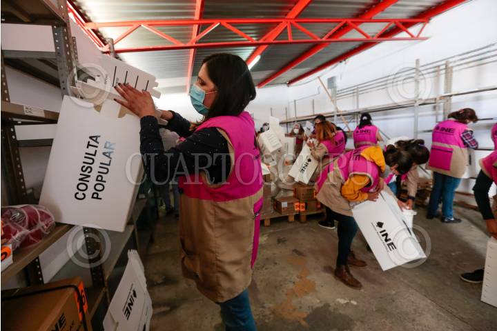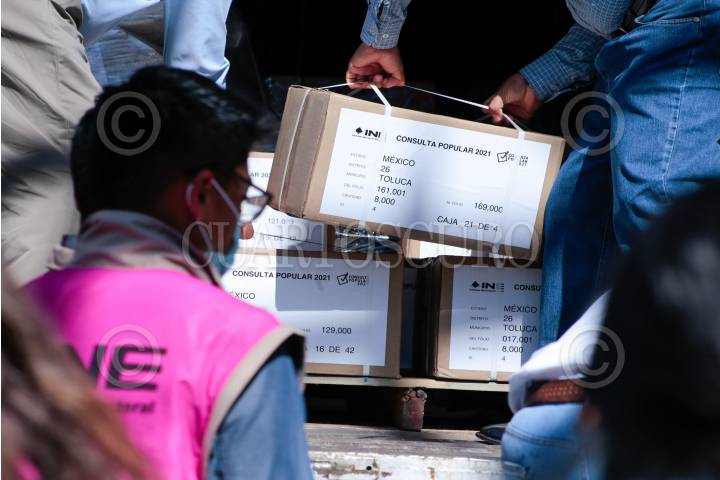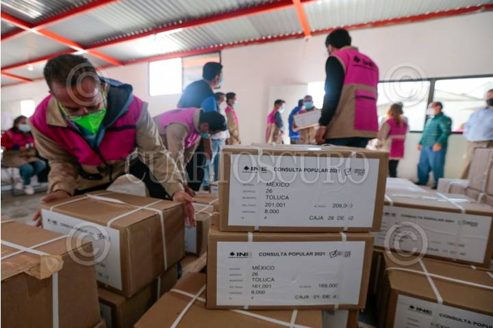Distribuyen papeletas para la consulta popular del 1 de agosto en la juntas distritales del INE en el Valle de Toluca.
