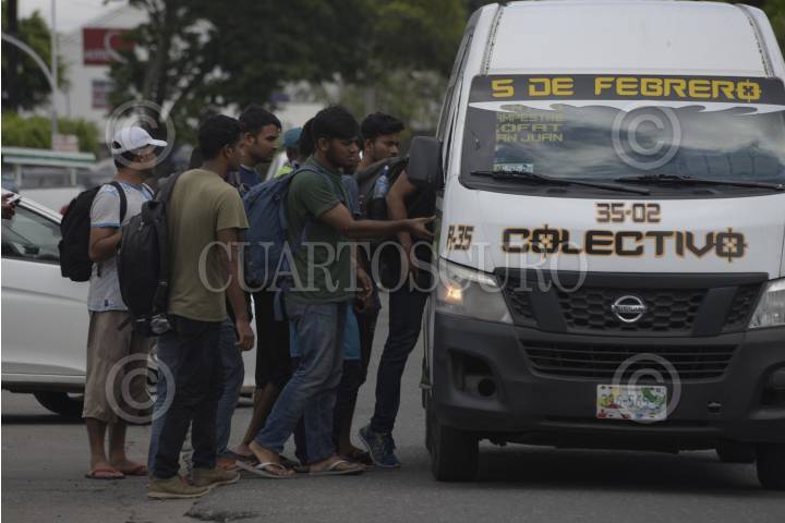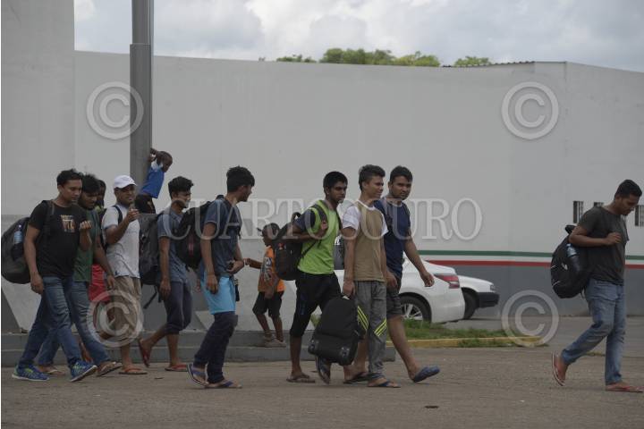 TAPACHULA, CHIAPAS, 03JUNIO2019.- El gobierno mexicano después de las declaraciones del presidente Trump ha intensificado los operativos de detención de migrantes, a pesar de ello personas provenientes de África y otros países continúan arribando a territorio mexicano. Muchos de ellos deciden acudir a la Estación Migratoria Siglo XXI y solicitar un salvo conducto o algún documento que les permita permanecer en el país de forma legal. Dentro de la estación de observa a un grupo de jóvenes cubanos avanzando para entrar a un autobús y ser deportados, afuera de la estación africanos y haitianos conviven mientras esperan sus tramites. FOTO: ISABEL MATEOS /CUARTOSCURO.COM