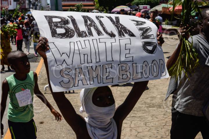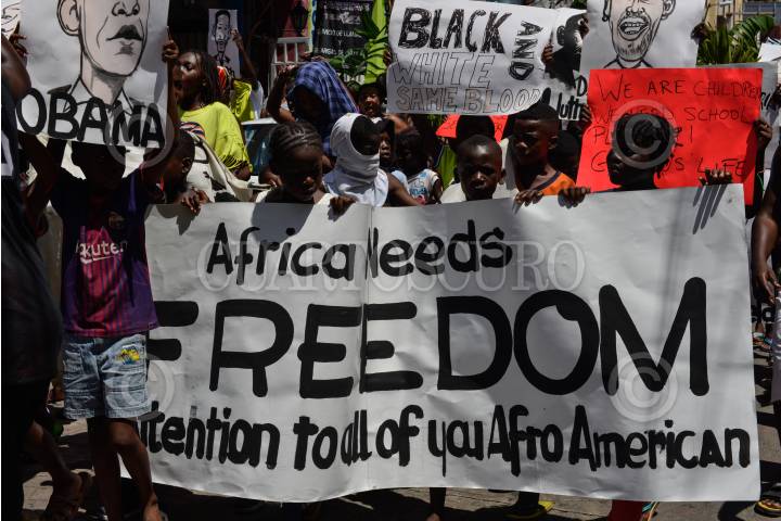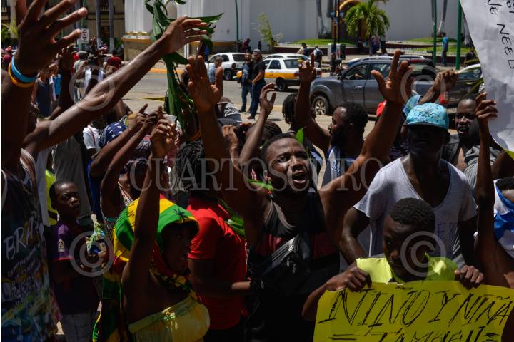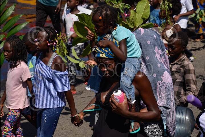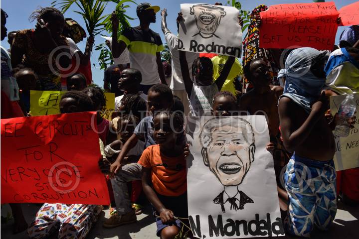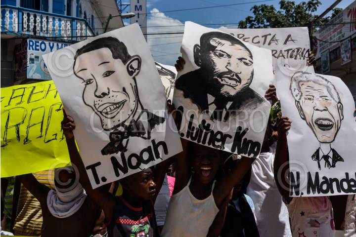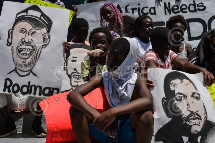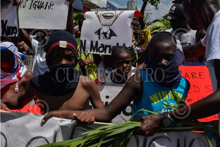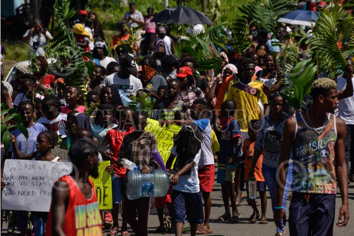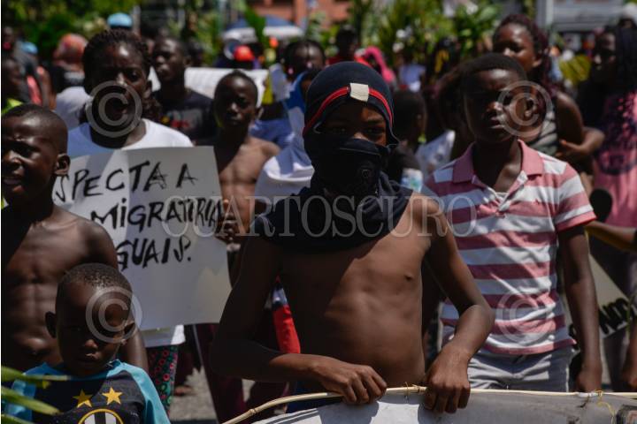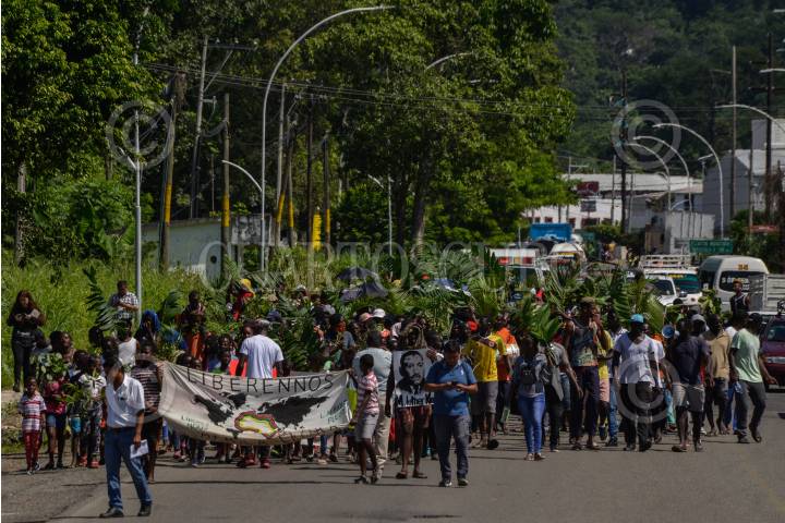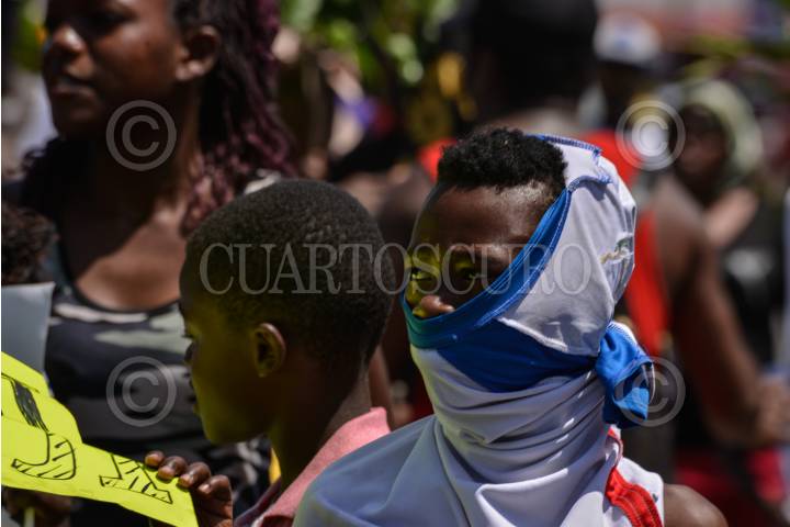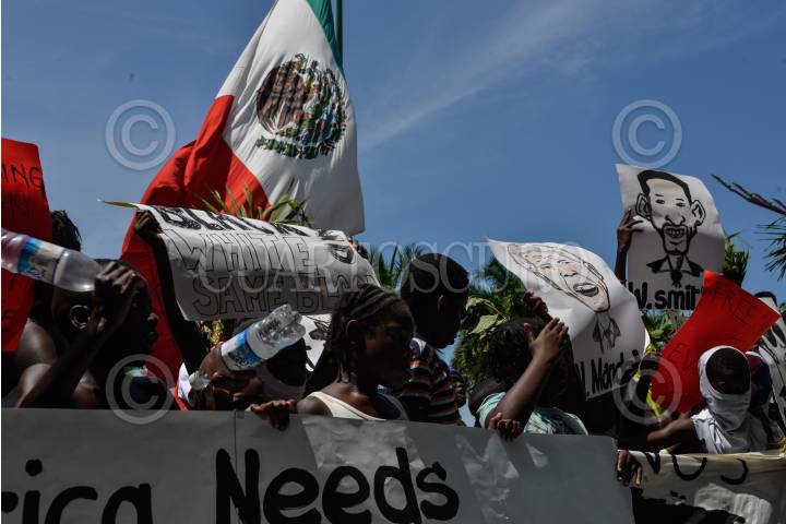 TAPACHUALA, CHIAPAS, 30SEPTIEMBRE2019.- Los migrantes africanos que continuan varados en el municipio, el día de hoy cumple cuarenta y dos días de protestas y manifestaciones, exigiendo al gobierno mexicano que les resuelva su situación migratoria ya que no pueden continuar su camino hacia el norte del continente. Por primera vez la marcha es liderada por los niños. FOTO: ISABEL MATEOS /CUARTOSCURO.COM