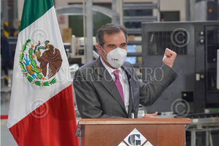 Lorenzo Córdova, consejero presidente del Instituto Nacional Electoral; durante el arranque de la impresión de la papeleta para la consulta ciudadana con motivo de la revocación de mandato.