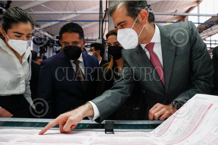 Lorenzo Córdova, consejero presidente del Instituto Nacional Electoral (INE), encabezó el arranque de la impresión de la papeleta para la consulta ciudadana con motivo de la revocación de mandato.