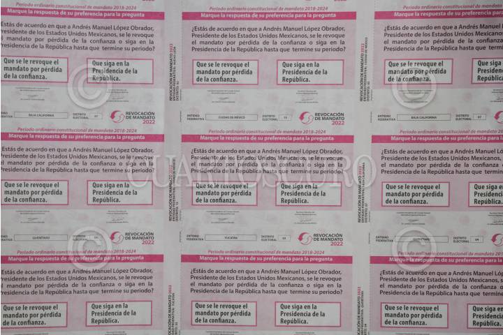 Impresión de la papeleta para la consulta ciudadana con motivo de la revocación de mandato.