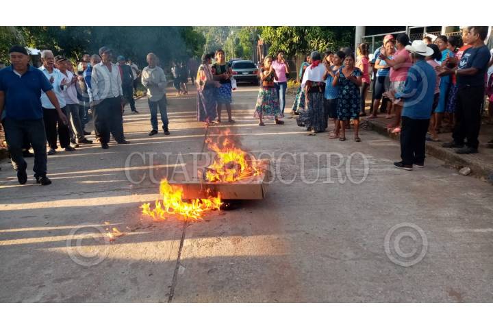 Pobladores de esta zona quemaron paquetería electoral para protestar que el gobierno no ha mandado ayuda tras el paso del huracán Agatha, pero si el material de las elecciones.