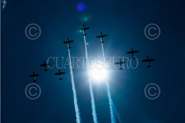 ATLANGATEPEC, TLAXCALA, 12SEPTIEMBRE2025.- Aeronaves dejan una estela de humo blanco durante el ensayo de la Parada Aérea Militar con motivo del desfile alusivo al 215 aniversario del inicio de la Guerra de Independencia de México. El acto se realizó en las inmediaciones de la Estación Aérea Militar No. 9 de la SEDENA. FOTO: GALO CAÑAS/CUARTOSCURO.COM