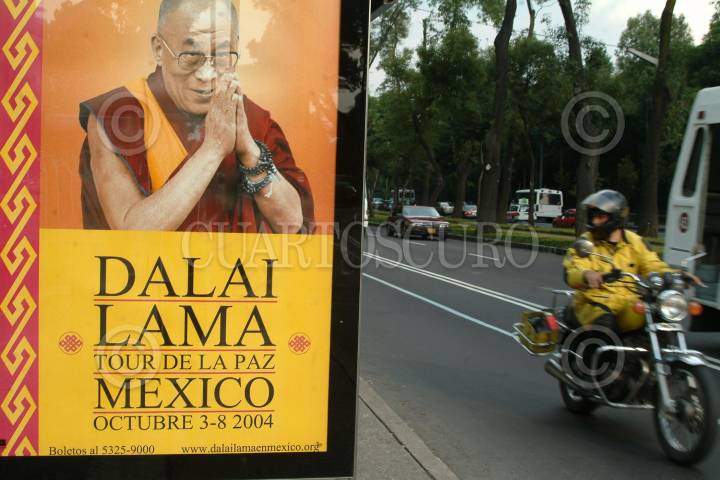 MEXICO, D.F. 24SEPTIEMBRE2004.- Propaganda que hace referencia a la visita del Dalai Lama a México se observó por las principales avenidas. El Dalai Lama visitará nuestro país del 3 al 8 de septiembre. FOTO: Iván Stephens/CUARTOSCURO.COM
