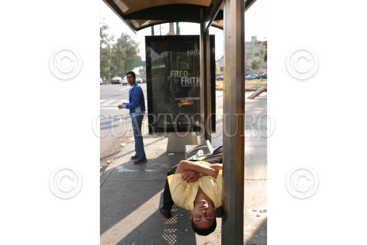 MÉXICO, D.F., 01ENERO2007.- Un joven duerme en un parabus despues de la fiesta de fin de año. FOTO: SAÚL LÓPEZ ESCORCIA/CUARTOSCURO.COM