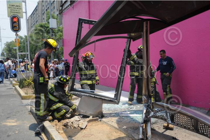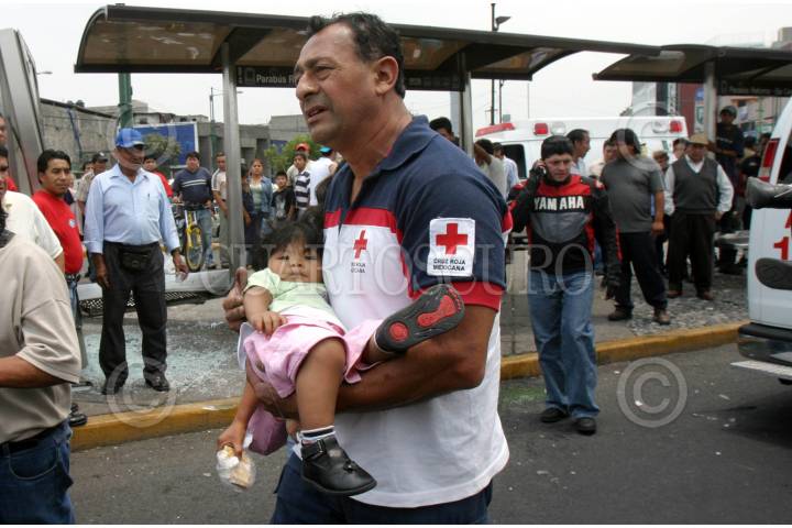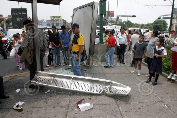 MÉXICO, D.F., 26ABRIL2007.- Un auto compacto atropelló alrededor de diez personas entre ellos menores de edad que esperaban el trasporte publico en un parabus sobre las avenidas paseo de la reforma y eje1 norte, el responsablefue detenido por elementos de la SSP. FOTO: PEDRO MARRUFO/CUARTOSCURO.COM