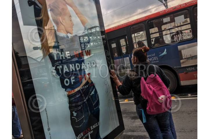 CIUDAD DE MÉXICO, 29AGOSTO2017.- Una mujer espera el trolebus frente a un anuncio publicitario, en una de las estaciones sobre Eje Central. FOTO: ISAAC ESQUIVEL /CUARTOSCURO.COM