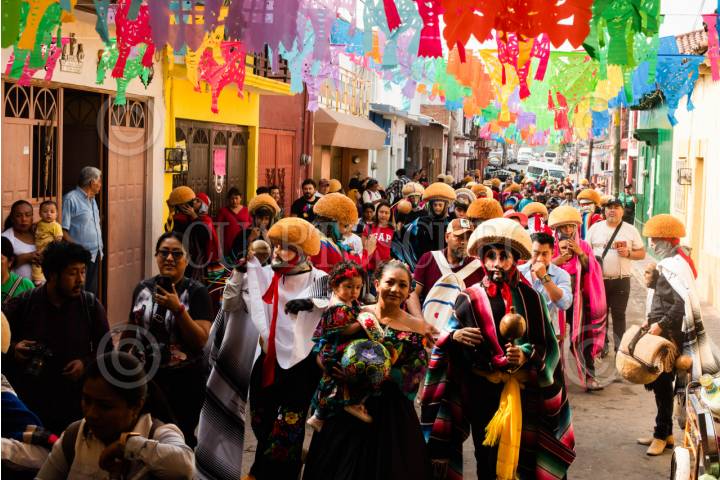 CHIAPA DE CORZO, CHIAPAS, 19ENERO 2023.- Continúan las actividades en la Fiesta Grande de Chiapa de Corzo y cientos de parachicos danzando al sol pintan de colores las calles de la ciudad. FOTO: ISABEL MATEOS /CUARTOSCURO.COM
