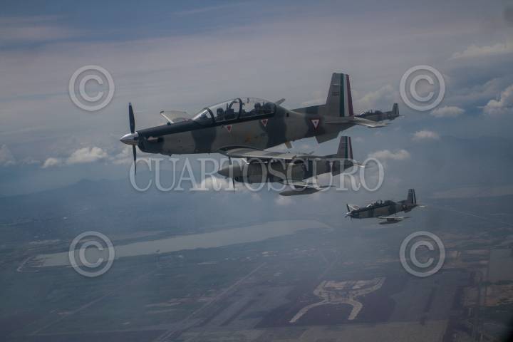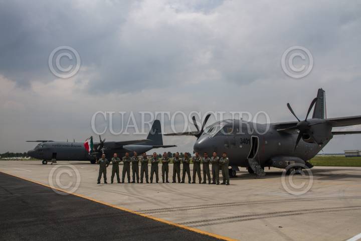 ATLANGATEPEC, TLAXCALA,12SEPTIEMBRE2024.- Elementos de la Fuerza Aérea Mexicana (FAM) realizaron el pase de revista de la Parada Aérea de cara al desfile conmemorativo al 214 aniversario de la Independencia de México. Lo anterior, en las inmediaciones de la 9na Zona Militar del Ejército Mexicano. FOTO: GALO CAÑAS/CUARTOSCURO.COM