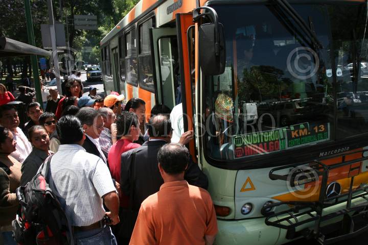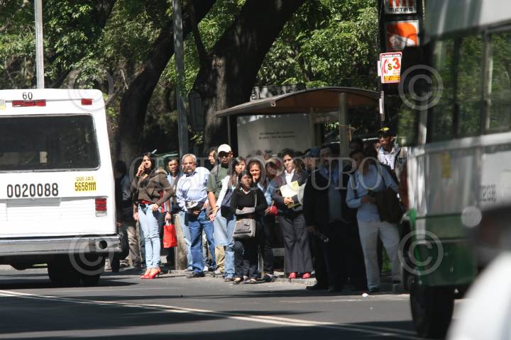 MÉXICO D.F., 23MARZO2009.- La protesta de los transportistas, provoco el retardo de los servicios del transporte ordinario en diversas avenidas de esta ciudad, así como la espera prolonga de este y la aglomeración de usuarios en los paraderos. FOTO: GUILLERMO PEREA/CUARTOSCURO.COM