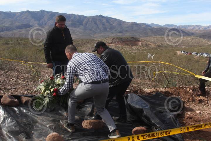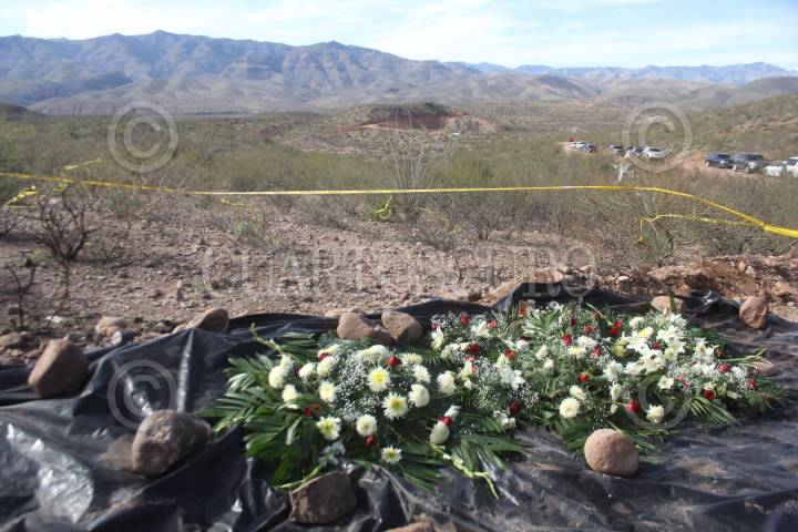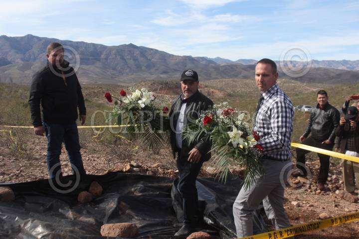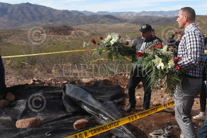 Familiares de la comunidad LeBarón acudieron al lugar en donde murieron asesinados 6 niños y 3 mujeres durante una emboscada para depositar unas flores y pedir un minuto de silencio en su memoria