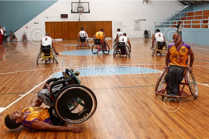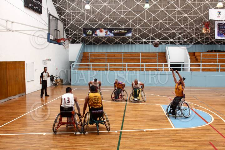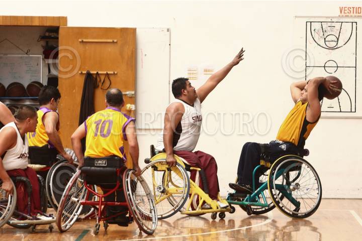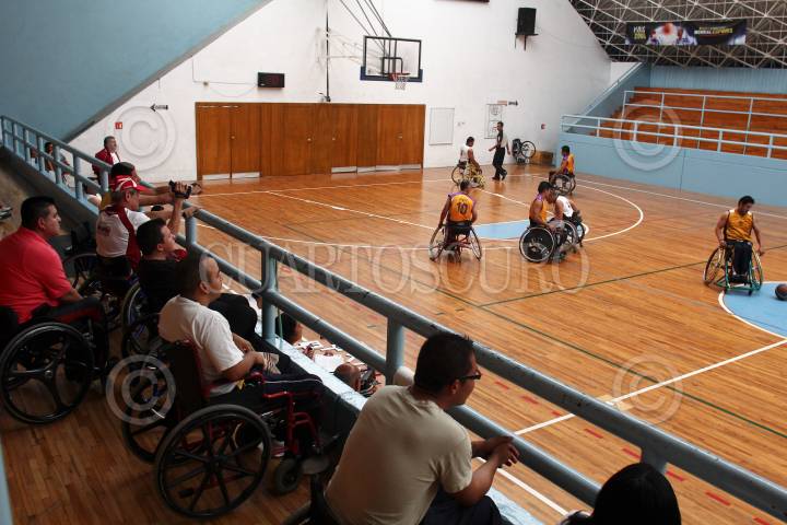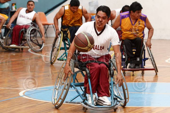 MÉXICO, D.F., 06ABRIL2011.- Continua el Campeonato Nacional de Basquetbol sobre Silla de Ruedas, que se celebrará en el Centro Paralímpico Mexicano (CEPAMEX), en la imagen los equipos de Sinaloa y DIF Nacional disputan un encuentro para calificar a las semifinales. FOTO: SAÚL LÓPEZ/CUARTOSCURO.COM