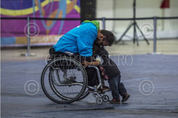 MÉXICO, D.F., 08SEPTIEMBRE2014.- Un joven abraza a su hijo durante la inauguración de los Juegos del Deporte Adaptado que se realizaran en la Ciudad Deportiva. FOTO: ENRIQUE ORDÓÑEZ /CUARTOSCURO.COM