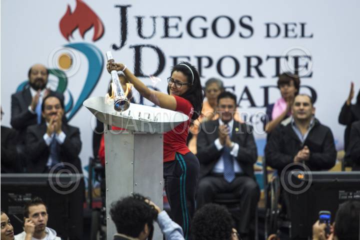 MÉXICO, D.F., 08SEPTIEMBRE2014.- Una Joven Atleta paralimpica, enciende el Pebetero de los Juegos del Deporte Adaptado que se realizaran en Ciudad Deportiva. FOTO: ENRIQUE ORDÓÑEZ /CUARTOSCURO.COM
