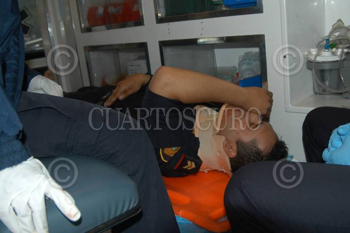MÉXICO D.F.; 16SEPTIEMBRE2013.- Dos policías de la PBI resultaron lesionados al impactar la camioneta en la que viajaban contra un auto Mini Cooper en el cruce de Av. Insurgentes a la altura de Eje 2 Norte Eulalia Guzmán colonia Santa María la Rivera. Los uniformados fueron atendidos por personal del ERUM. FOTO: LUIS CARBAYO /CUARTOSCURO.COM