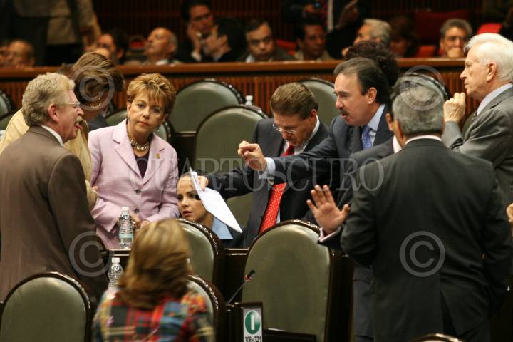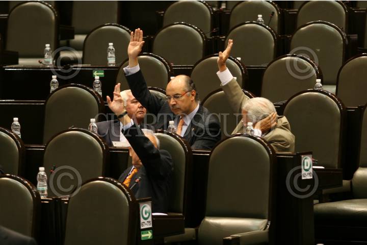 MÉXICO D.F., 16OCTUBRE2008.- Se realizó la sesión ordinaria en la Cámara de Diputados, a la cual acudieron deportistas olímpicos y paraolímpicos, algunos de ellos medallistas en las pasadas olimpiadas que se realizaron en China. En la imagen los diputados del partido Convergencia, emiten su voto durante la sesión. FOTO: GUILLERMO PEREA/CUARTOSCURO.COM