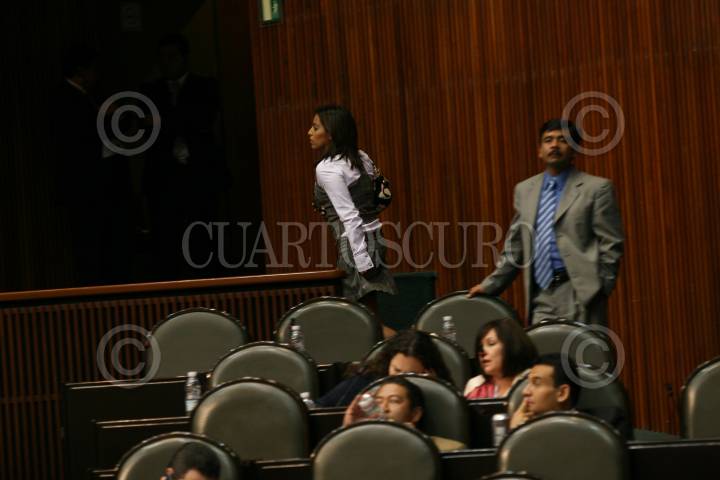 MÉXICO D.F., 16OCTUBRE2008.- Se realizó la sesión ordinaria en la Cámara de Diputados, a la cual acudieron deportistas olímpicos y paraolímpicos, algunos de ellos medallistas en las pasadas olimpiadas que se realizaron en China. En la imagen la medallista Tatiana Ortiz, se retira del recinto durante la sesión. FOTO: GUILLERMO PEREA/CUARTOSCURO.COM