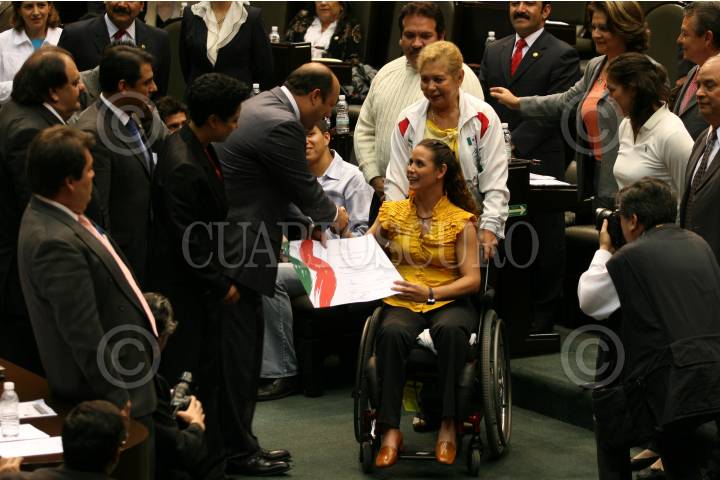 MÉXICO D.F., 16OCTUBRE2008.- Se realizó la sesión ordinaria en la Cámara de Diputados, a la cual acudieron deportistas olímpicos y paraolímpicos, algunos de ellos medallistas en las pasadas olimpiadas que se realizaron en China. FOTO: GUILLERMO PEREA/CUARTOSCURO.COM