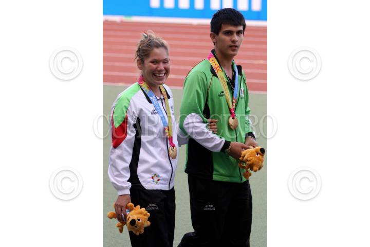 ZAPOPAN, JALISCO, 17NOVIEMBRE2011.- La mexicana Tania Lorena Jimenez logró conseguir la medalla de oro en la prueba femenil de lanzamiento de bala F12, en el estadio de atletismo, dentro del marco de los Juegos Parapanamericanos Guadalajara 2011. FOTO: FERNANDO CARRANZA/CUARTOSCURO.COM