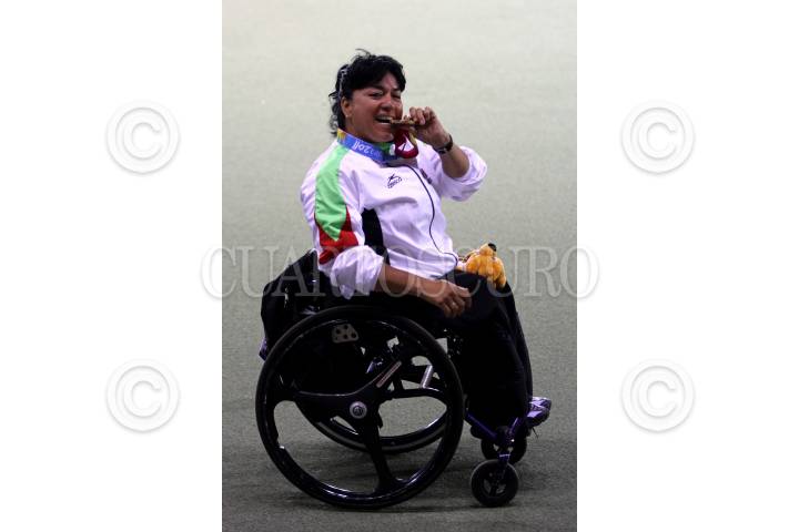 ZAPOPAN, JALISCO, 17NOVIEMBRE2011.- La mexicana Esther Rivera, logró conseguir la medalla de oro en la prueba final femenil de javalina, en el estadio de atletismo, dentro del marco de los Juegos Parapanamericanos Guadalajara 2011. FOTO: FERNANDO CARRANZA/CUARTOSCURO.COM