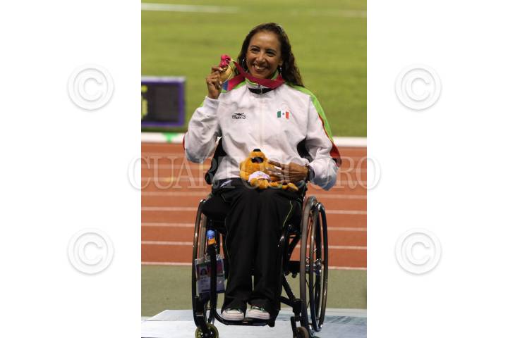 ZAPOPAN, JALISCO, 17NOVIEMBRE2011.- La mexicana Yazmith Bataz, logro conseguir la medalla de oro en la prueba de los 100 metros femenil-T54, en el estadio de atletismo, dentro del marco de los Juegos Parapanamericanos Guadalajara 2011. FOTO: FERNANDO CARRANZA/CUARTOSCURO.COM