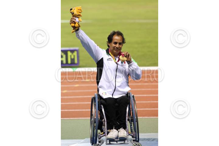 ZAPOPAN, JALISCO, 17NOVIEMBRE2011.- El mexicano Salvador Hernández Mondragon, logró conseguir la medalla de oro en la prueba de 400 metros varonil T52, en el estadio de atletismo, dentro del marco de los Juegos Parapanamericanos Guadalajara 2011. FOTO: FERNANDO CARRANZA/CUARTOSCURO.COM