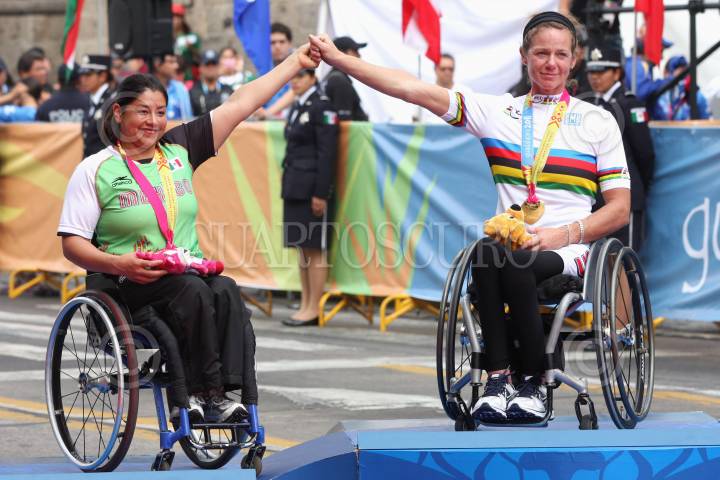 GUADALAJARA, JALISCO, 19NOVIEMBRE2011.- La mexicana Ivonne Reyes consiguió la medalla de plata en la prueba de ciclismo de ruta femenil H3-4 de los juegos Paranamericanos Guadalajara 2011. La norteamericana Mónica Bascio obtuvó la presea de oro. FOTO: FERNANDO CARRANZA GARCÍA/CUARTOSCURO.COM