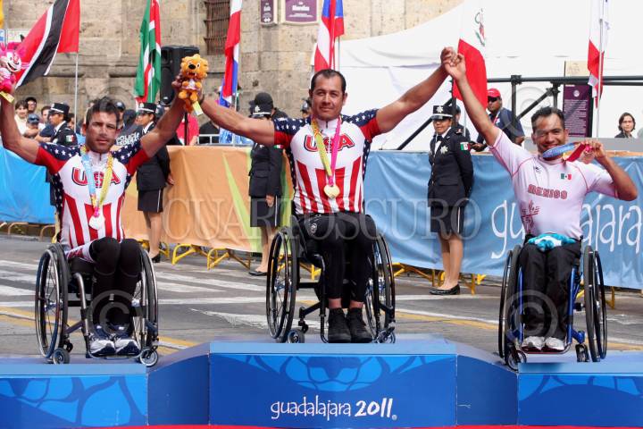 GUADALAJARA, JALISCO, 19NOVIEMBRE2011.- Se desarrollo el circuito de ciclismo de ruta de los Juegos Paranamericanos Guadalajara 2011. Los mexicanos Gonzálo Valdovinos consiguió la medalla de bronce e Ivonne Reyes hizó lo propio obteniendo la plata. FOTO: FERNANDO CARRANZA/CUARTOSCURO.COM