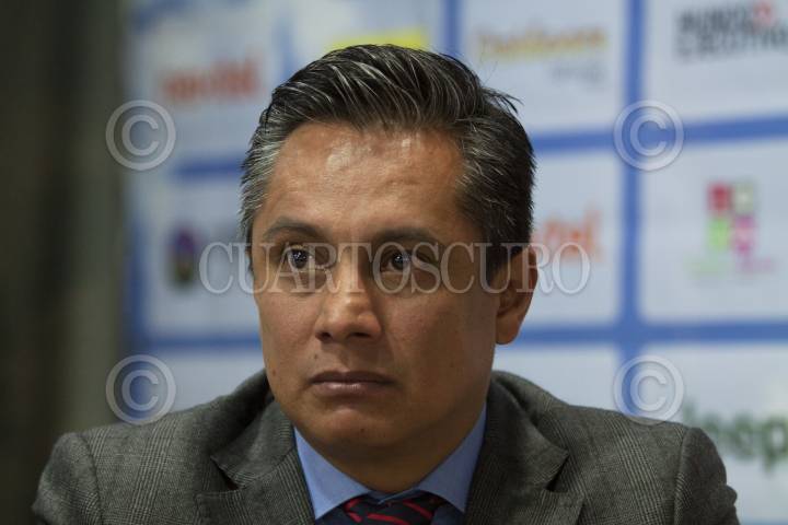MÉXICO, D.F., 17FEBRERO2015.- Fernando Platas , director general del IMCUFIDE, durante la conferencia de prensa en la cual se dieron los detalles del XX Mundial Ala Delta 2015. Valle de Bravo recibirá a cientos de atletas de diversos países que participarán en una de las competencias más ambiciosas del mundo en parapente. El XX Mundial Ala Delta se llevará a cabo del 28 de febrero al 13 de marzo de 2015 FOTO: MOISÉS PABLO /CUARTOSCURO.COM