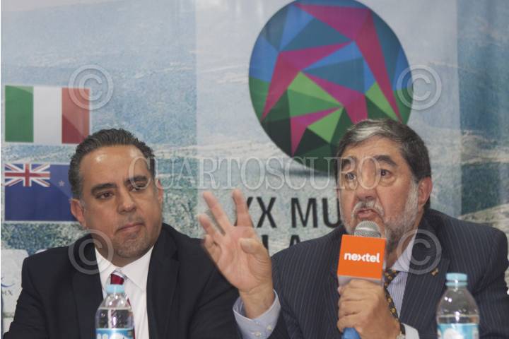 MÉXICO, D.F., 17FEBRERO2015.- Oscar García Ramos, director de Turismo del Estado de México y José Peña Buenrostro, presidente de la Federación Mexicana de Aeronáutica, durante la conferencia de prensa en la cual se dieron los detalles del XX Mundial Ala Delta 2015. Valle de Bravo recibirá a cientos de atletas de diversos países que participarán en una de las competencias más ambiciosas del mundo en parapente. El XX Mundial Ala Delta se llevará a cabo del 28 de febrero al 13 de marzo de 2015 FOTO: MOISÉS PABLO /CUARTOSCURO.COM