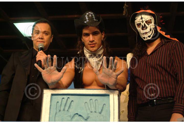 MEXICO, D.F. 10DICIEMBRE2004.- "Intocable "plasmó sus huellas en la plaza galerías acompañado de "La Parca". FOTO: Iván Stephens/CUARTOSCURO.COM