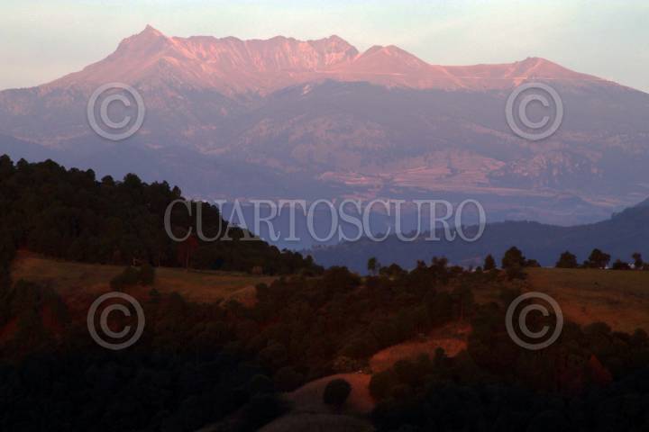 Panorámica del volcán Xinantecátl o nevado de Toluca desde la comunidad de San José el Totoc.
