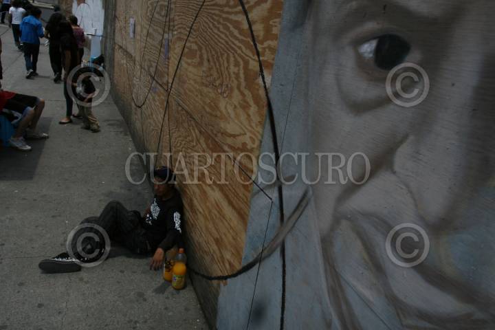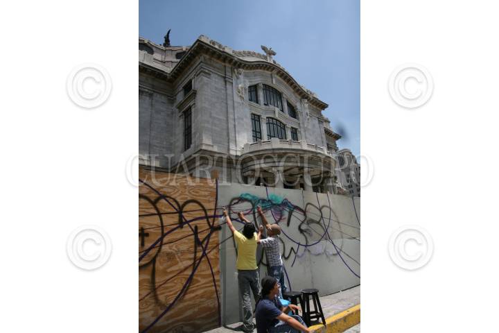 MÉXICO D.F., 31JULIO2009.- Decenas de jóvenes acudieron a las afueras del Palacio de Bellas Artes, a realizar la pinta colectiva “ Contra la Pared en los Tablones que circundan el Palacio de Bellas Artes” esto con la finalidad de abrirse un espacio de expresión y tener un encuentro con el publico juvenil . FOTO: GUILLERMO PEREA/CUARTOSCURO.COM