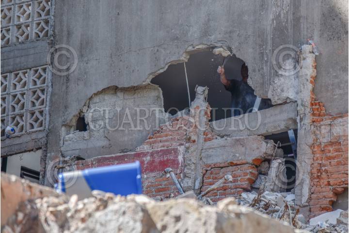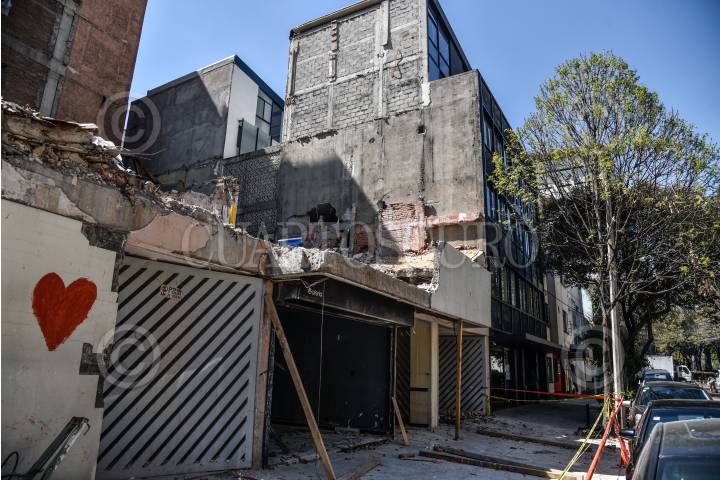 CIUDAD DE MÉXICO, 08NOVIEMBRE2017.- Trabajadores comenzaron a remover la pared dañada del edificio vecino al de Amsterdam 107, que resultó derrumbado a causa del sismo del 19 de septiembre. FOTO: MARIO JASSO /CUARTOSCURO.COM