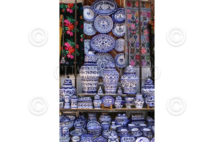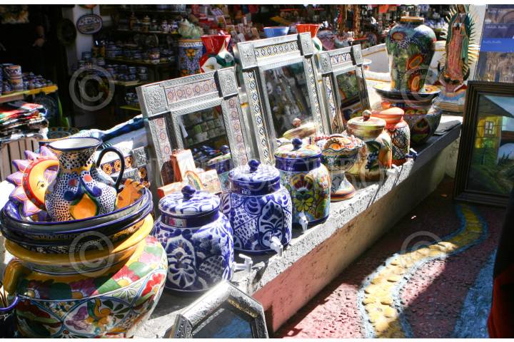 PUEBLA, PUEBLA, 15NOVIEMBRE2008.- En el mercado de El Parían ubicado en el centro de esta ciudad se consigue todo tipo de artesanías típicas del lugar en especial la fina cerámica de Talavera. FOTO: RODOLFO ANGULO/CUARTOSCURO.COM