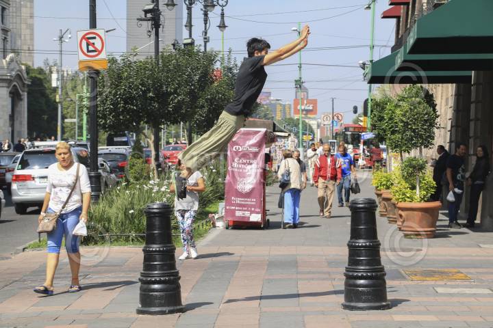 MÉXICO, D.F., 25AGOSTO2013.-Para ganarse unas monedas el joven David realiza actos de la disciplina conocida como Parkour, consistente en realizar acrobacias en edificos y mobiliario urbano sin ninguna herramienta más que el cuerpo humano de sus practicantes. FOTO: JUAN PABLO ZAMORA /CUARTOSCURO.COM