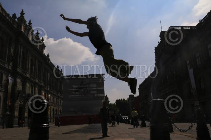 CIUDAD DE MÉXICO, 07OCTUBRE2016.- Un joven practica Parkour en calles del centro histórico de la Ciudad de México. FOTO: SÁÚL LÓPEZ /CUARTOSCURO.COM