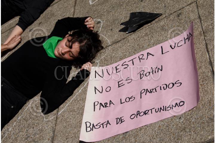 Mujeres de colectivas feministas protestaron en las inmediaciones de la Cámara de Senadores contra el oportunismo político de distintos partidos