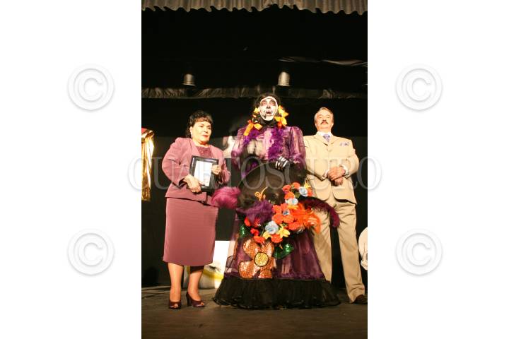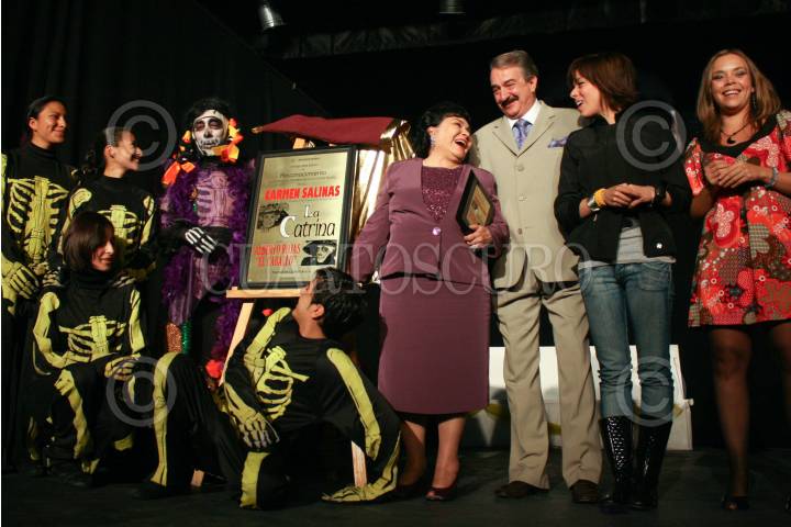 MÉXICO, D.F., 16OCTUBRE2008.- Carmen Salinas apadrino a Alberto "El Caballo" Rojas, durante el estreno de la obra "Los monólogos de la Catrina". FOTO: RICARDO CASTELAN/CUARTOSCURO.COM