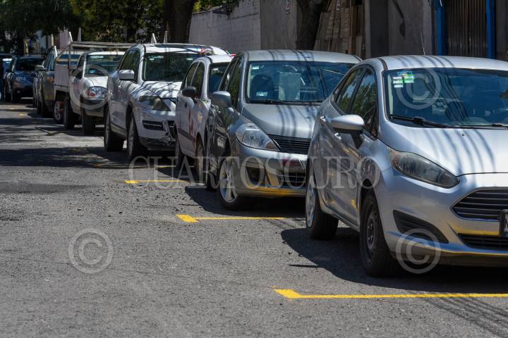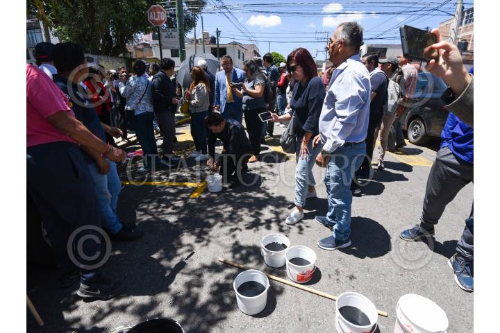 Vecinos de la colonia Francisco Murguía en Toluca se manifestaron en contra de la operación de parquímetros virtuales en esta zona, con pintura negra cancelaron los cajones de los parquímetros.