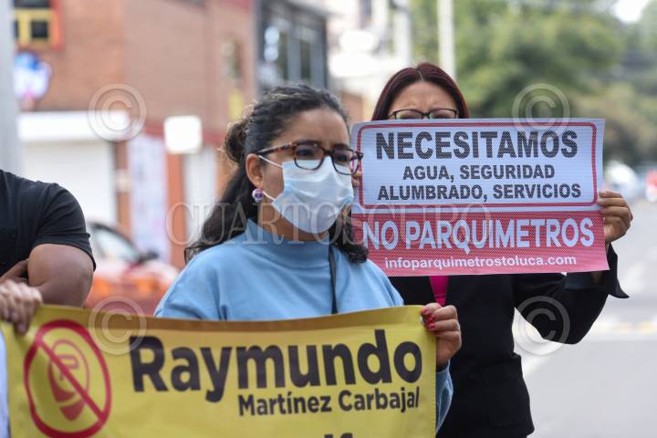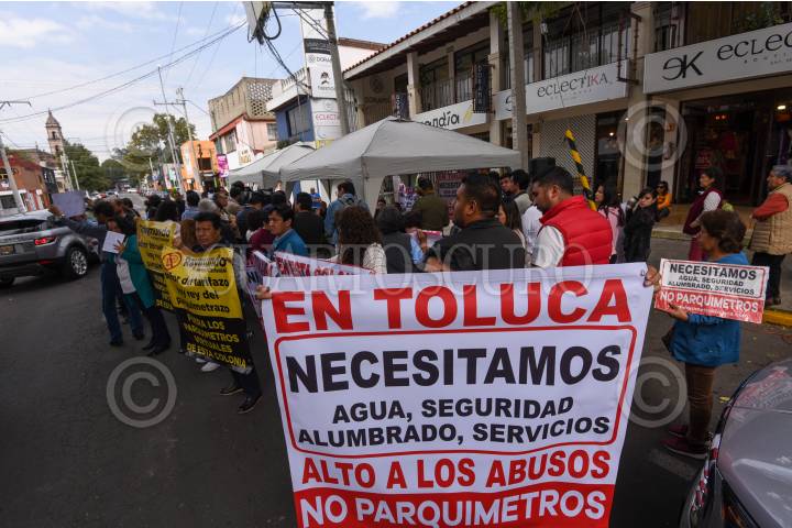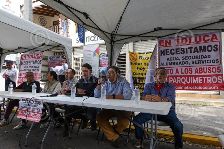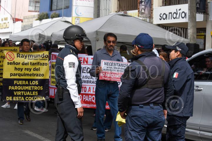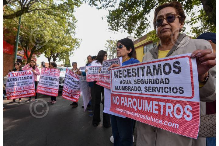 Vecinos de las colonias Universidad, Américas, Francisco Murguía y la Merced, acompañados por los ediles de Toluca manifestaron su rechazo a los parquímetros virtuales y condenan los hechos ocurridos el viernes pasado al ser detenidos vecinos y un regidor por policías municipales.
