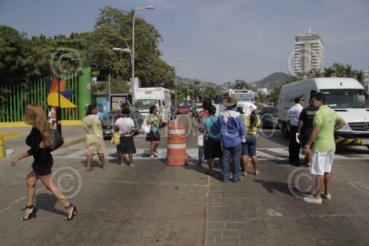 ACAPULCO, GUERRERO, 21ENERO2015.- Alrededor de unos 18 a 20 Arrendatarios bloquean la calle Gómez Morin y la Costera Miguel Alemán por la falta de seguridad y exigieron la destitución del director del parque Papagayo Arquimides Guzmán Cisneros ya que recibe mensualmente mas de 600 mil pesos por la renta de los mas de 60 locatarios. El empresario Luis Francisco Aguilar, representante de los locatarios, advirtió que si no hay pronta solución a sus demandas volverán a bloquear estas vialidades. Al lugar llegaron elementos de Gendarmería y autoridades del municipio quienes estuvieron en platicas por mas de cuatro horas. FOTO: BERNANDINO HERNÁNDEZ /CUARTOSCURO.COM